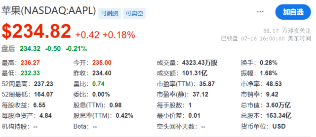 苹果市值屡创新高突破3.6万亿美元 Apple Intelligence是“催化剂”