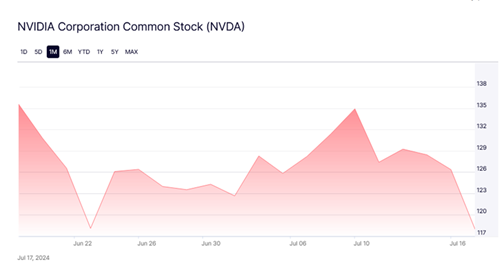 因人工智能而在今年大涨的英伟达,在周三跌幅明显。周三美股收盘时,英伟达报117.99美元,较前一交易日收盘时的126.36美元下跌8.37美元,跌幅为6.62%。