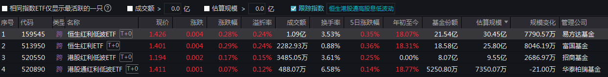 今年以来,股息率较高的港股红利类资产“吸金”明显。数据显示,港股红利类ETF今年净流入145亿元,月内净流入22.7亿元,本周净流入8.2亿元。