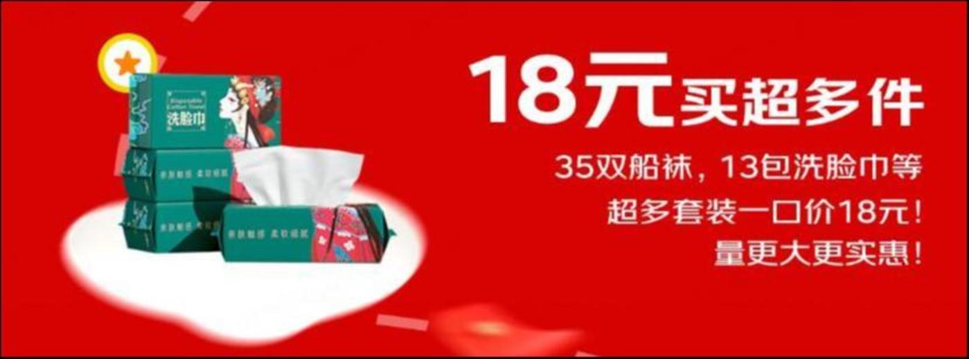 此外,“京东超级18”还推出了“18元买超多件”活动专区,18元就能买35双船袜,或者是300颗洗衣凝珠、60包米多奇零食、40片补水面膜、30枚鸡蛋、海天调味品12件套……量更大、更实惠。