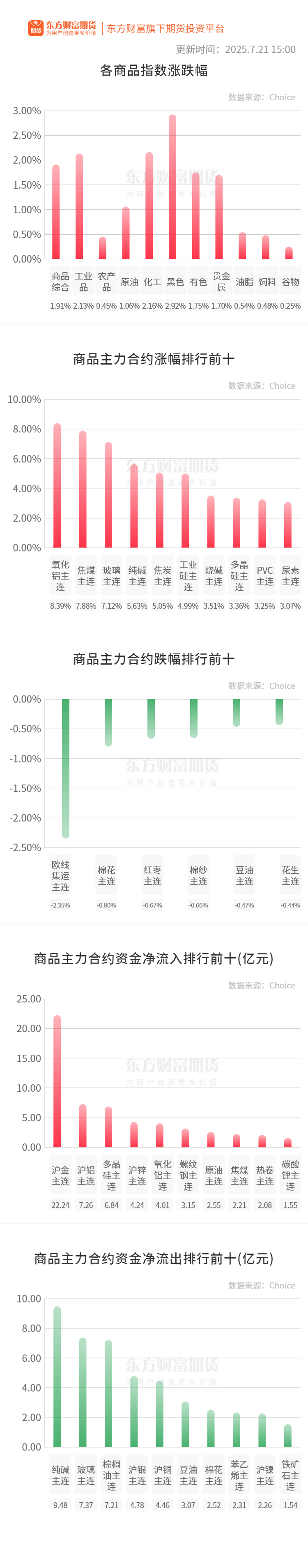 工业硅:7月21日,华东不通氧553#在9200—9300元/吨;通氧553#在9400—9600元/吨;521#在9500—9700元/吨;441#在9600—9800元/吨;421#在9600—9900元/吨;421#有机硅用在9600—10400元/吨;3303#在10200—10600元/吨。昆明、黄埔港、天津、西北、新疆、上海、四川地区部分硅价也上涨。97硅今日价格同样上涨。(SMM)