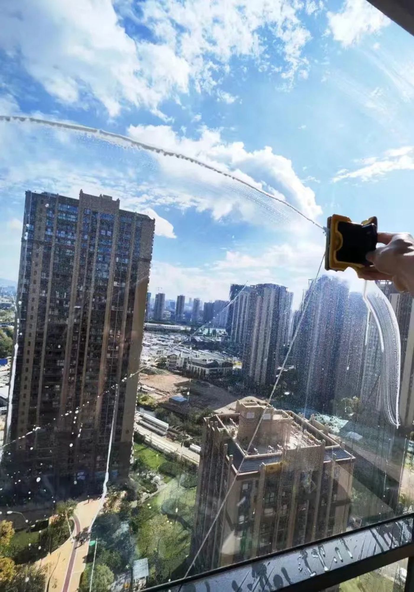 图 | 李浩在高温天气下清洁窗户