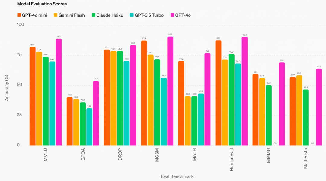 GPT-4o mini已经在多个关键基准测试中进行了评估: