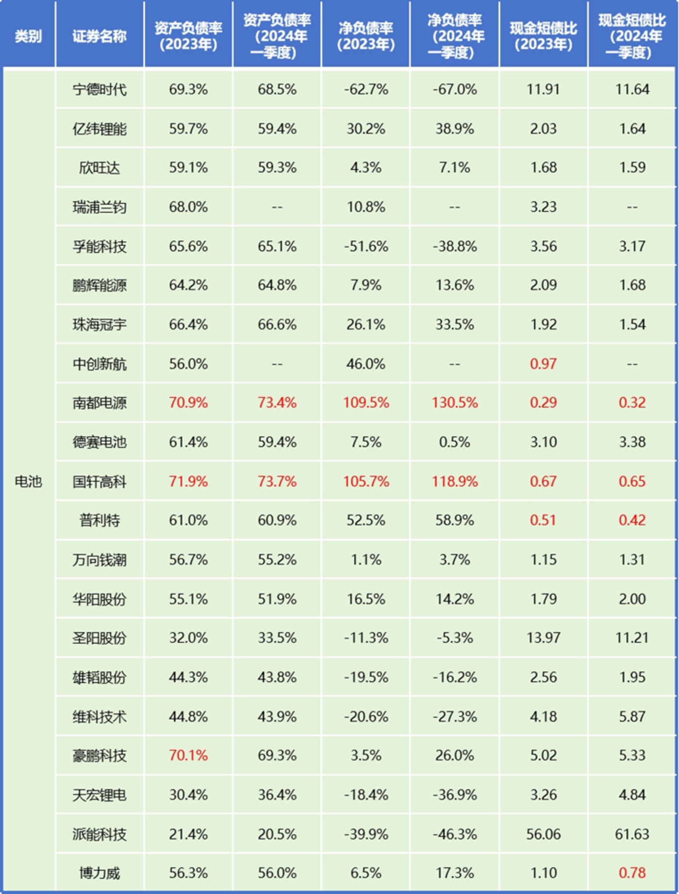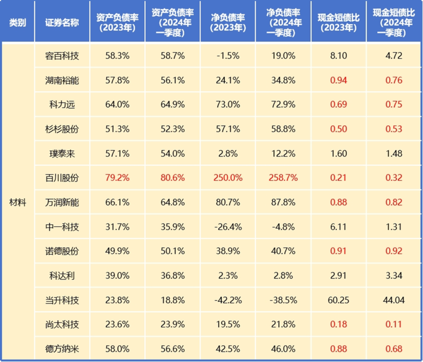 可以看到,储能材料类企业普遍大上产能,有一半以上企业的现金短债比超过了警戒线。