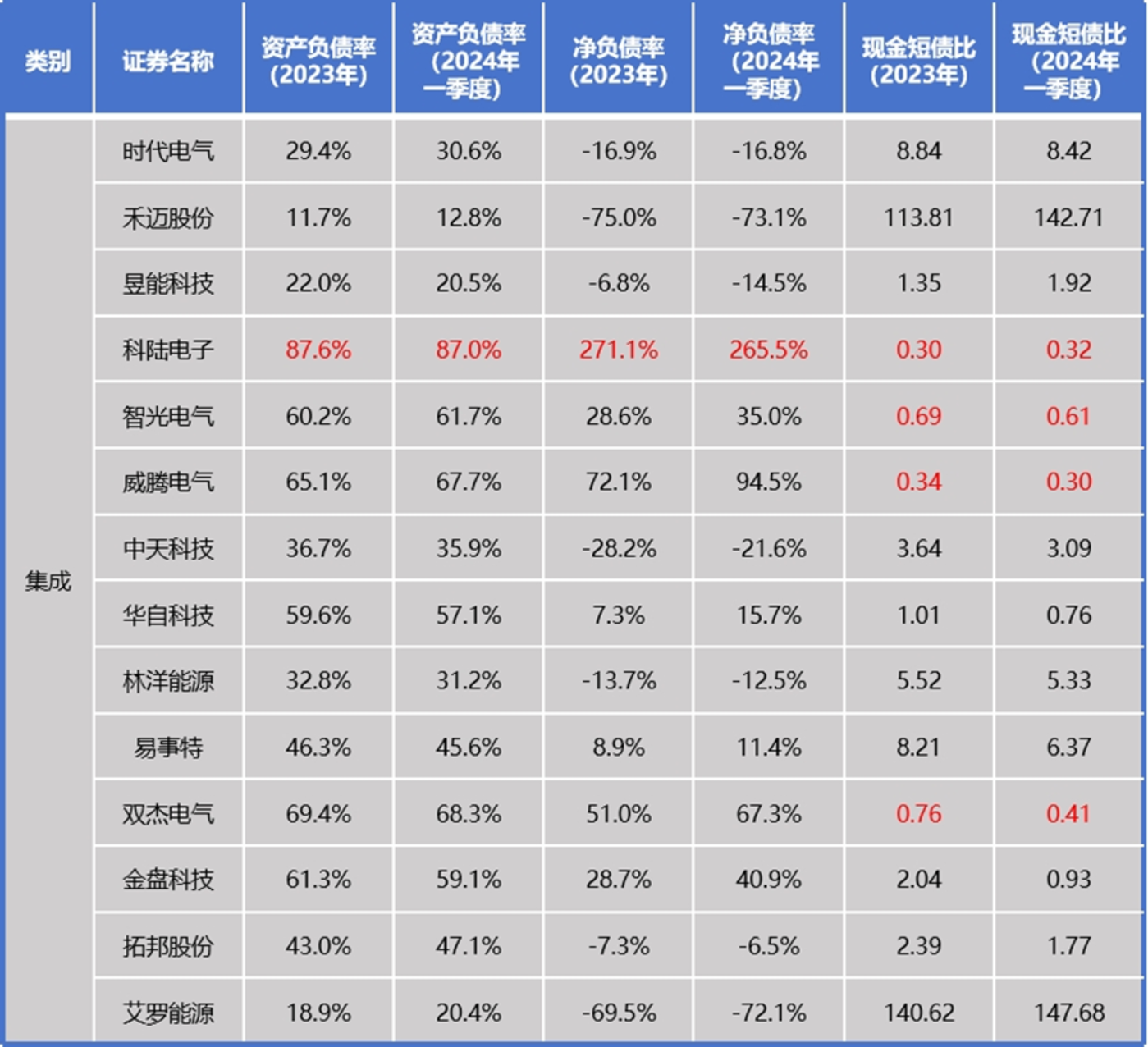 整体来看,储能系统集成企业的负债状况大多比较稳健,时代电气、禾迈股份行业龙头地位稳固。