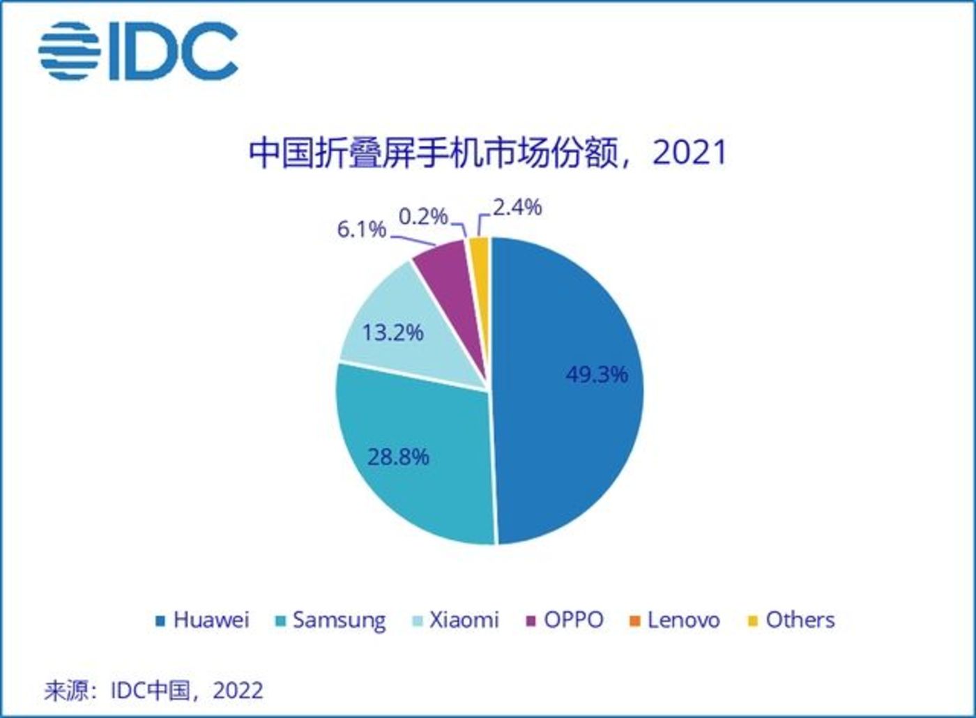 小米折叠屏不是没有过高光。据IDC数据,2021年小米在中国折叠屏手机的市场份额为13.2%,仅次于华为和三星,位居第三。