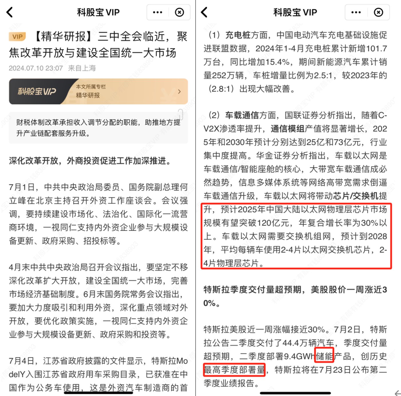 7月18日8:43,【科股早餐会】提到,国内储能H1并网量同比高增125%,三大环节或受益,并引用华安证券观点表示,2024年保障性并网项目竞争性配置+市场化并网占比提升+部分存量项目开始要求配储,将支撑国内储能规模高增。