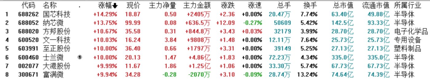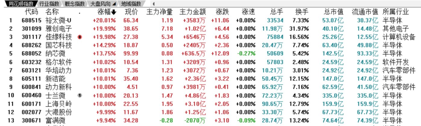 7月19日,汽车芯片板块涨幅超10%的个股13家。