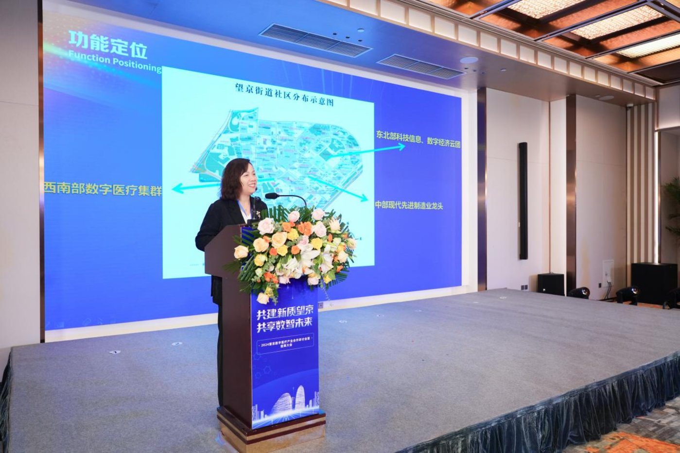 望京街道工委副书记、办事处主任刘丹介绍了望京地区在推动数字经济与医药健康产业融合发展方面的优势与举措。按照朝阳区“商务+科技”双轮驱动发展理念,望京街道已成功构建起三大经济产业片区布局。其中,西南部作为数字医疗产业发展区域,望京街道通过坚实的产业基础为依托,突出的创新能力以及朝阳区有力的政策支持,打造了具有望京特色的高质量数字医疗产业集群。同时,望京街道积极链接优质企业资源,在望京地区打造了“北京数智中医药谷”,共同推动了科技成果转化落地,通过辐射周边区域,进一步推动地区数字医疗产业繁荣发展。