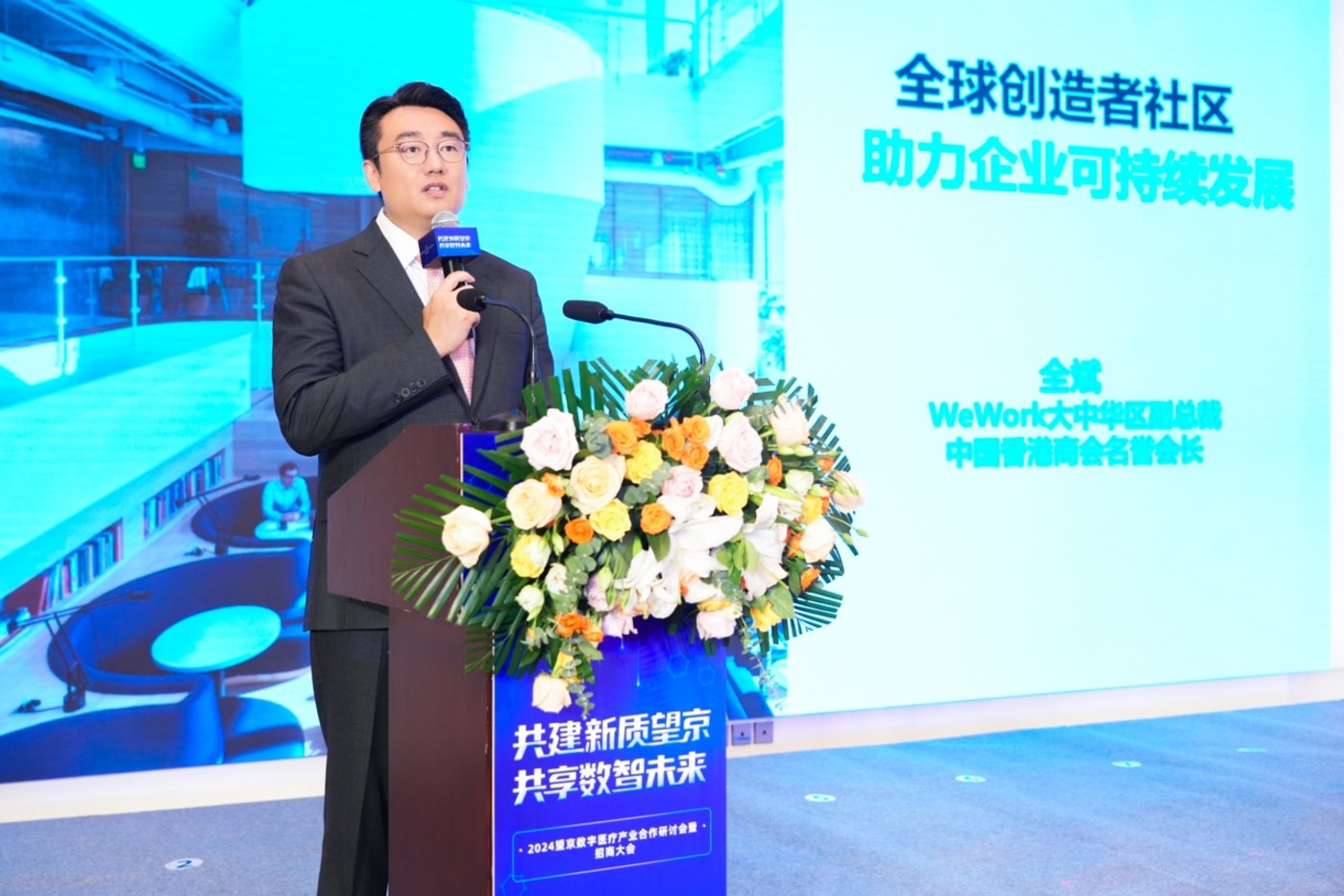 7月18日,由中关村科技园区朝阳园管理委员会、朝阳区发展和改革委员会、朝阳区卫生健康委员会指导,望京街道工委、办事处主办,WeWork中国承办,北京中医药大学、科企新球协办的“共建新质望京 共享数智未来”2024望京数字医疗产业合作研讨会暨招商大会在北京召开。智慧医疗相关企业、投资者、上下游服务商的众多高管及行业专家,共计100余家单位、企业、楼宇代表参与,共同探索数字医疗产业的未来发展方向与合作机遇。