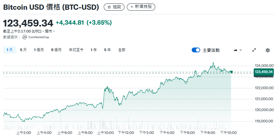 行情数据显示,比特币在隔夜纽约交易时段一举攻克了123500美元,超过了7月14日创下的123205.12的历史前高纪录,周四亚洲时段则更是一度突破了124000美元关口。