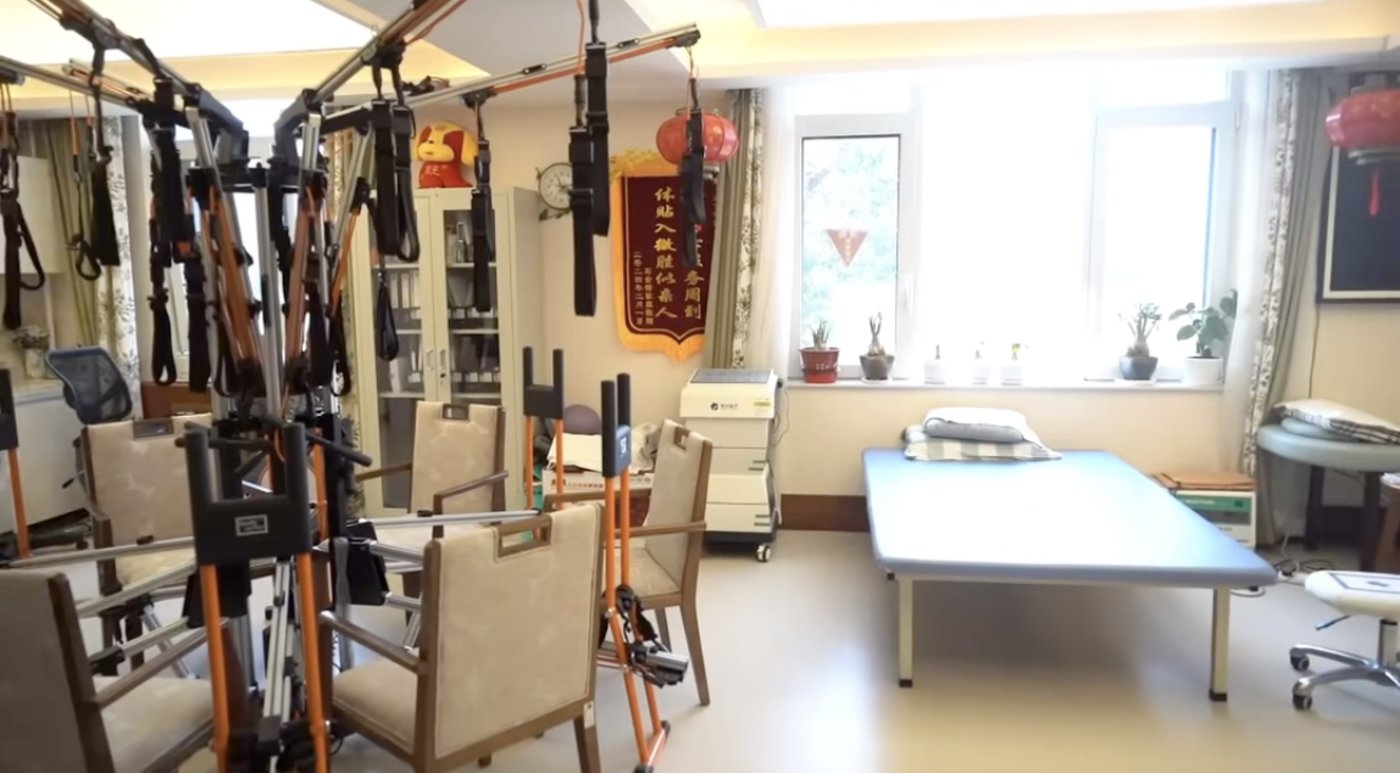 ● 一养老院设置的康复室,每天使用需要购买一个月6000元的康复包。图源:受访者的视频截图