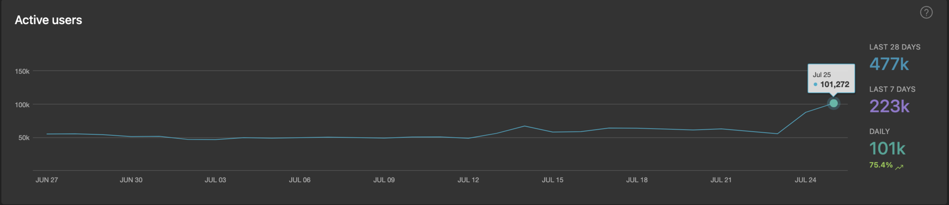 这个月 DAU 晃荡晃荡,稳中有升,有种被@GooglePlay 追着赏饭吃的感觉… 🤣🤣