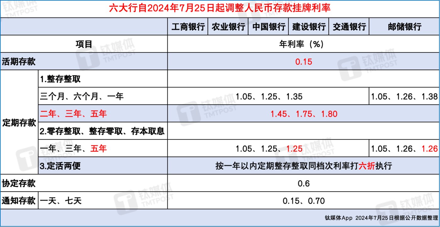 六大行官宣下调存款利率,5年期存款利率已经全面破2%