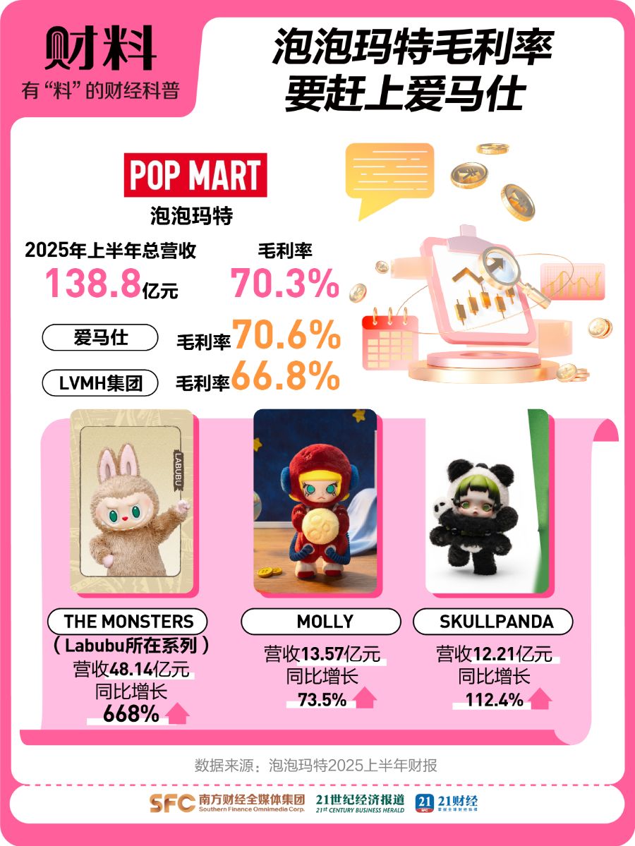 官宣当天,泡泡玛特市值就稳稳站上4300亿港元!最新财报披露:2025年上半年泡泡玛特毛利率飙到70.3%,不仅碾压LVMH,甚至快追上爱马仕了!其中,Labubu所属的THE MONSTERS系列营收暴涨668%,妥妥的“吸金王”。不过Labubu不是突然火的,从推出到出圈,足足熬了7年。