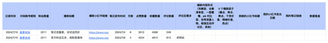 以下是我自己的【对标账号和对标笔记记录表】,有需要可以自取。