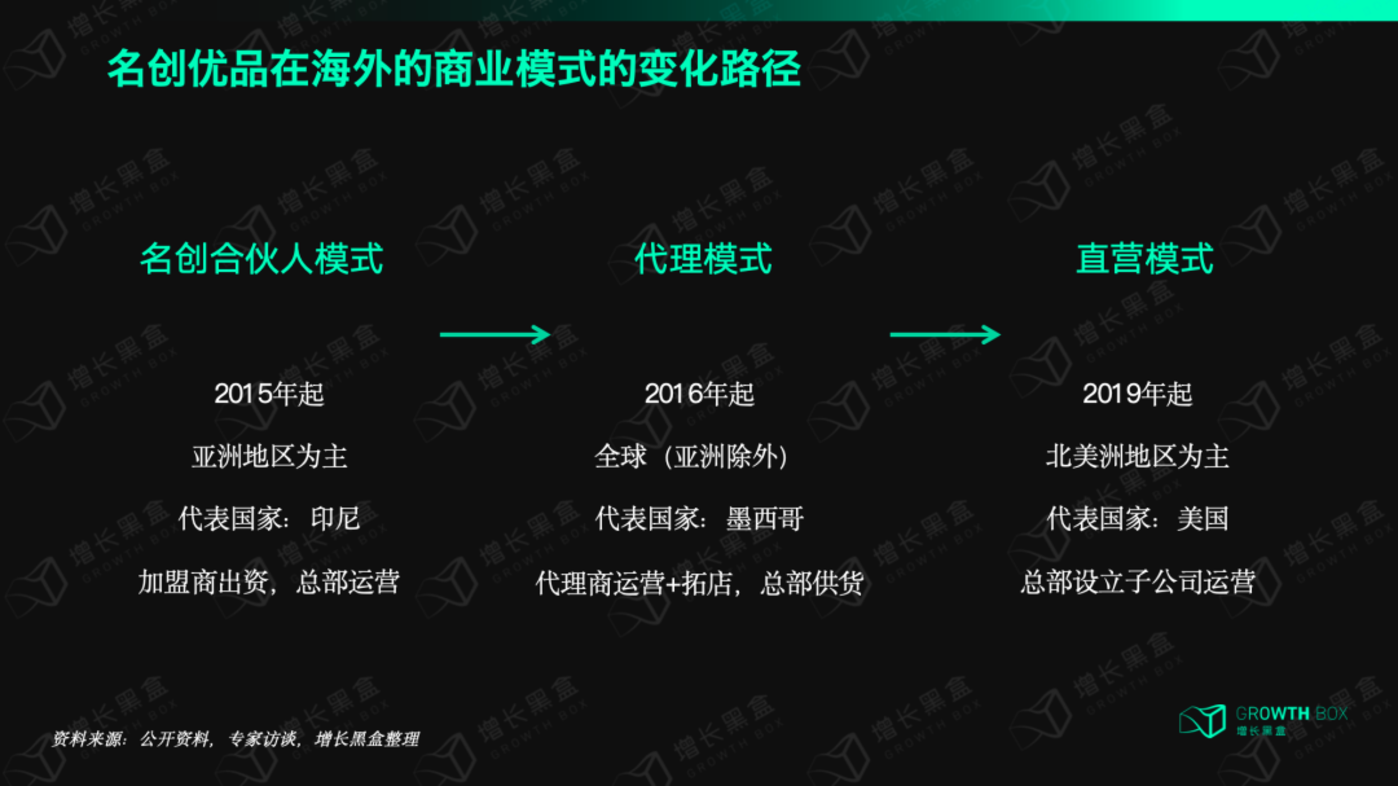 我们观察到,这些年中,名创优品在海外的商业模式经历了如下转变: