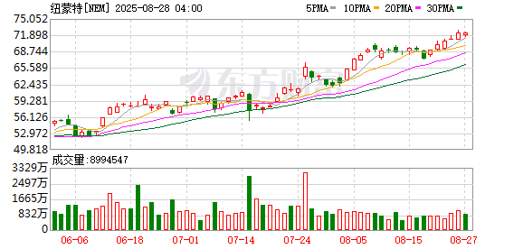 今年4月,金价一度升至每盎司3500美元的历史新高,此后大多维持在3300美元以上。受惠于创纪录的国际金价,大型金矿商普遍收益颇丰,纽蒙特股价年内已累涨近95%。