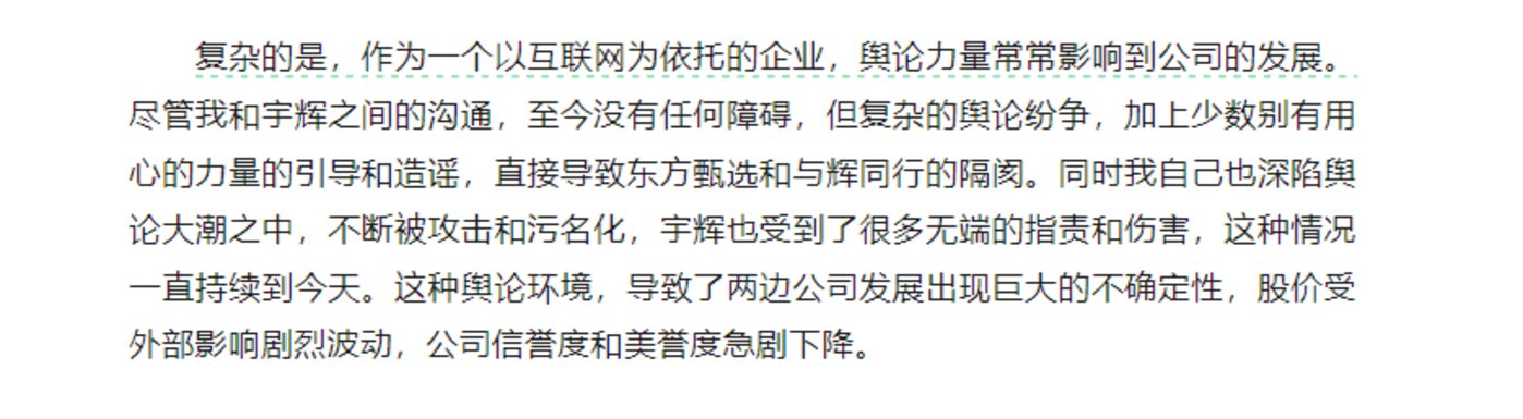 “小作文事件”背后也反映出除了公司治理上引起的员工心理的不平衡之外,更反映出了在紧急事件面前,东方甄选团队并不令人满意的公关对策。
