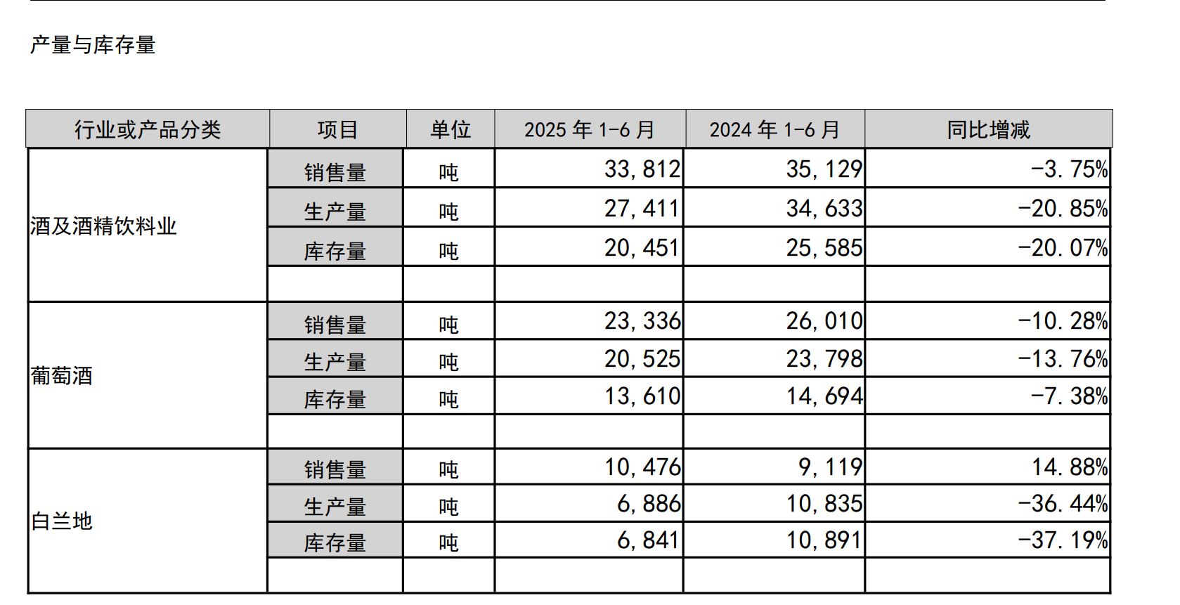 葡萄酒销量、产量均同比下滑