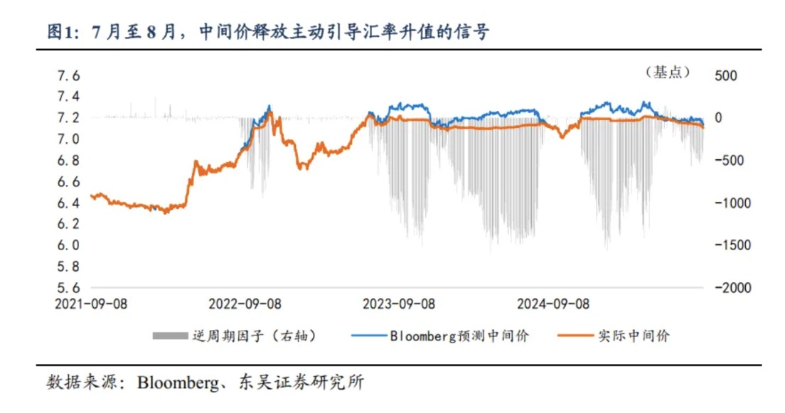1. 7月至8月中间价释放引导主动升值的信号