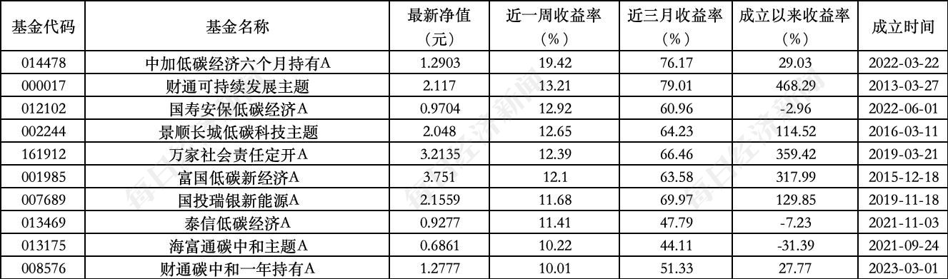 值得一提的是,与上周相似,本期上榜的泛ESG主题指数型基金行业集中度高,10只产品全为新能源或新能源汽车相关产业,但自成立以来获得正收益的基金仅有3只。