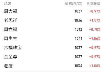 9月2日,国内多家品牌金饰价格持续上涨。