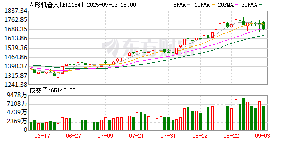 值得一提的是,午后人形机器人概念股大幅飙升,浙江荣泰从跌超5%直线飙升至涨停。