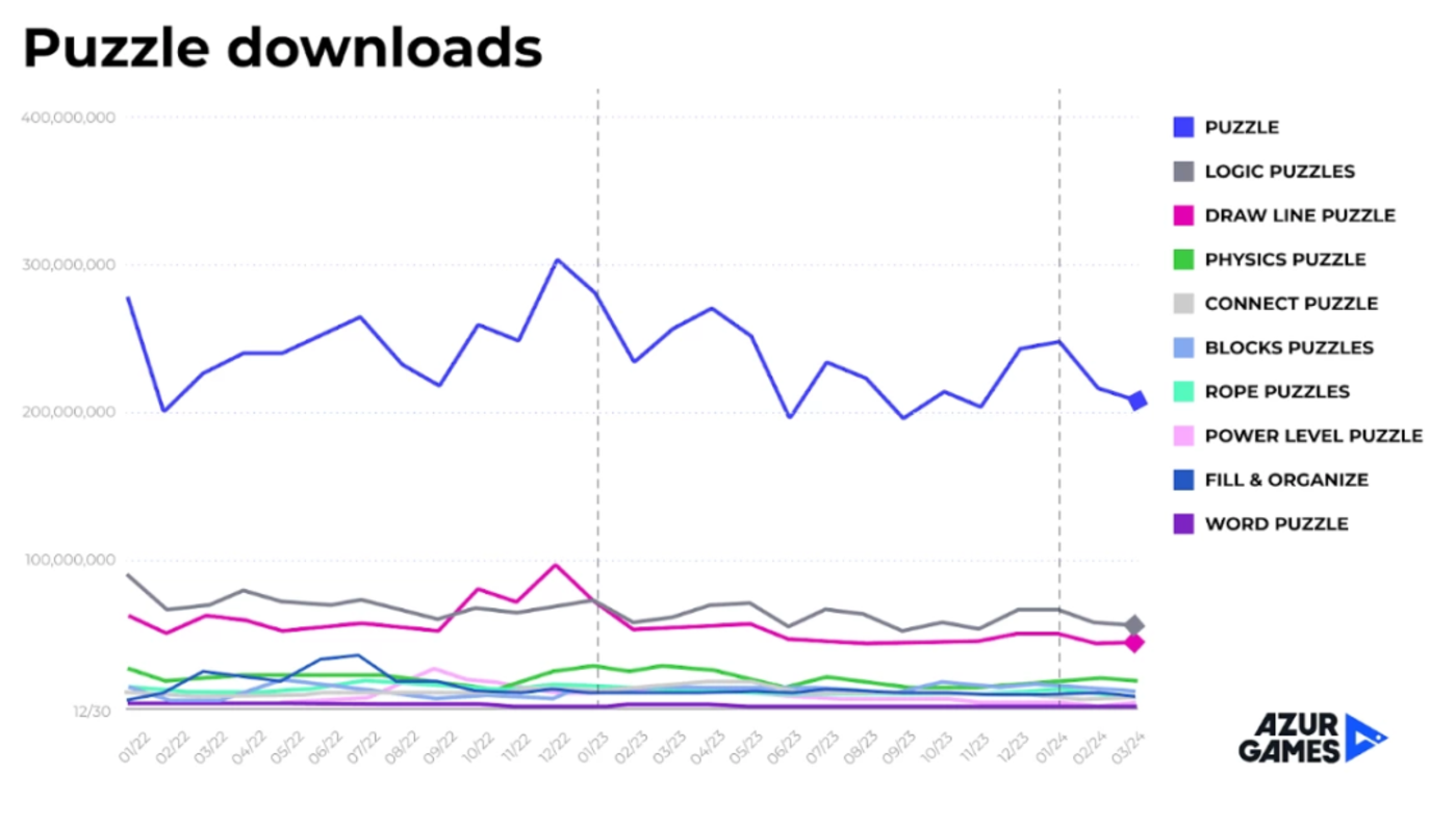 这是一个有着显著内购变现能力的稳健品类,值得厂商们认真关注。益智游戏现在也融合了更多样的玩法,有着多线内容进度。