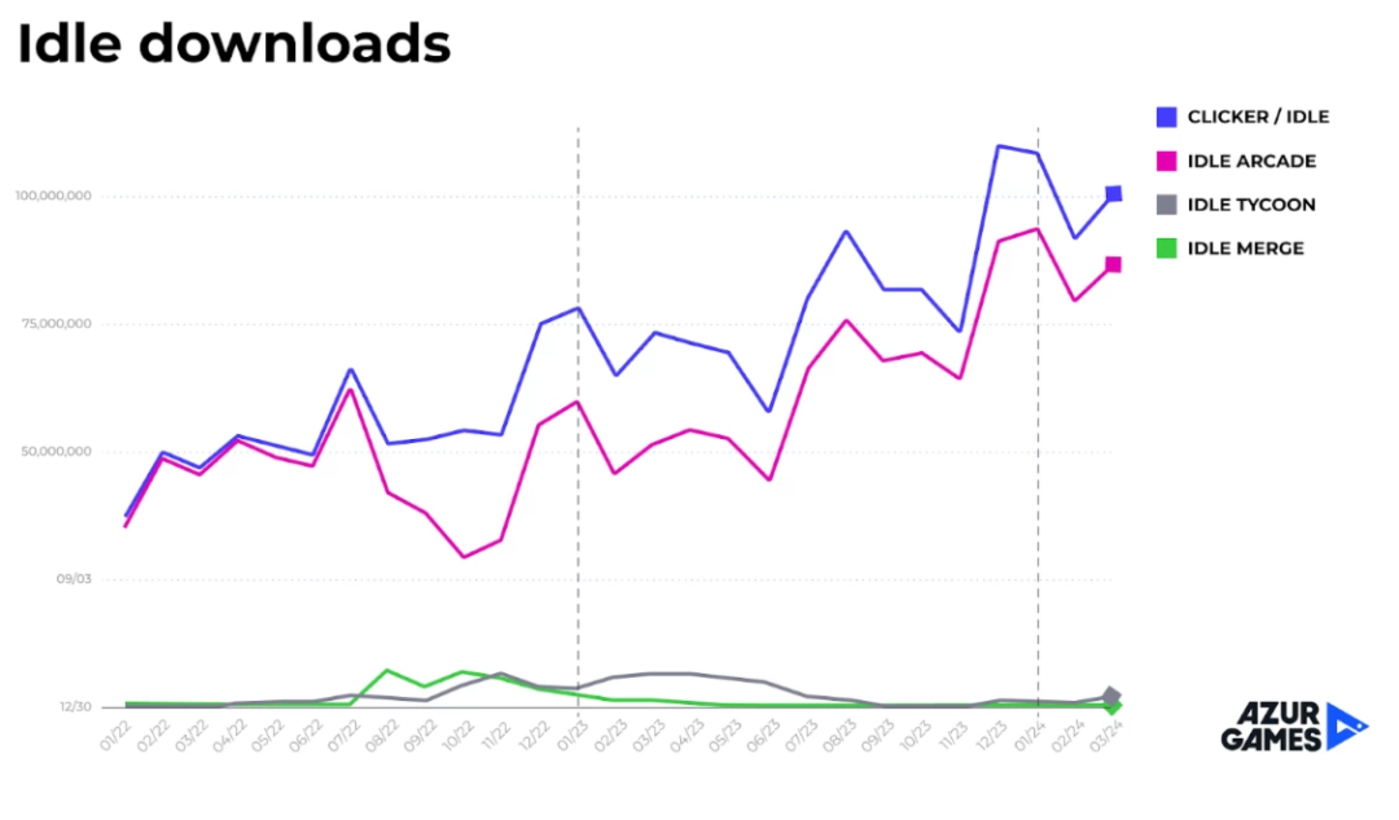 想要在今天的放置品类中竞争,你需要有不止是一种核心玩法。你必须融合其它机制,并且加上能影响到主进度的小游戏。这是当下这个品类流行的发展趋势。