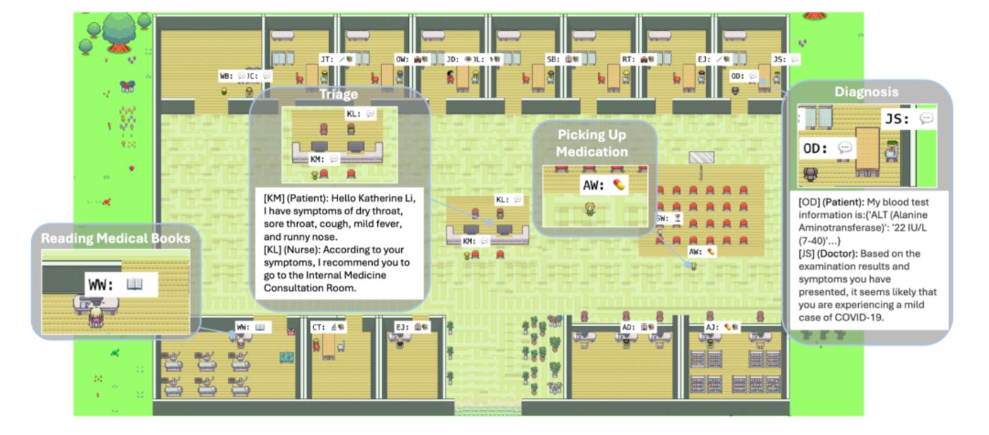 清华大学研究团队提出的“智能体医院”(Agent Hospital),可以模拟治疗疾病的整个过程,其核心目标是让医生智能体学会如何在模拟环境中治疗疾病,甚至可以不断从成功和失败的病例中积累经验实现自我进化。