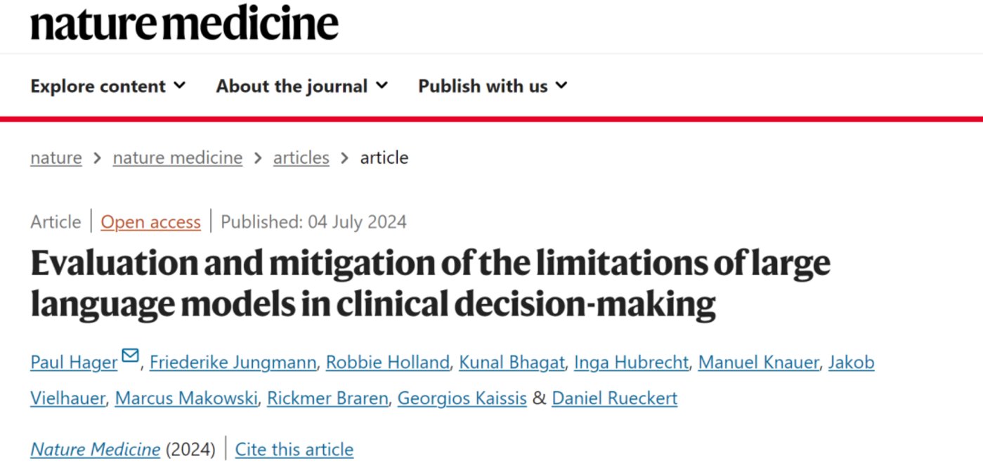 相关研究论文以“Evaluation and mitigation of the limitations of large language models in clinical decision-making”为题,已于近日发表在科学期刊 Nature Medicine 上。