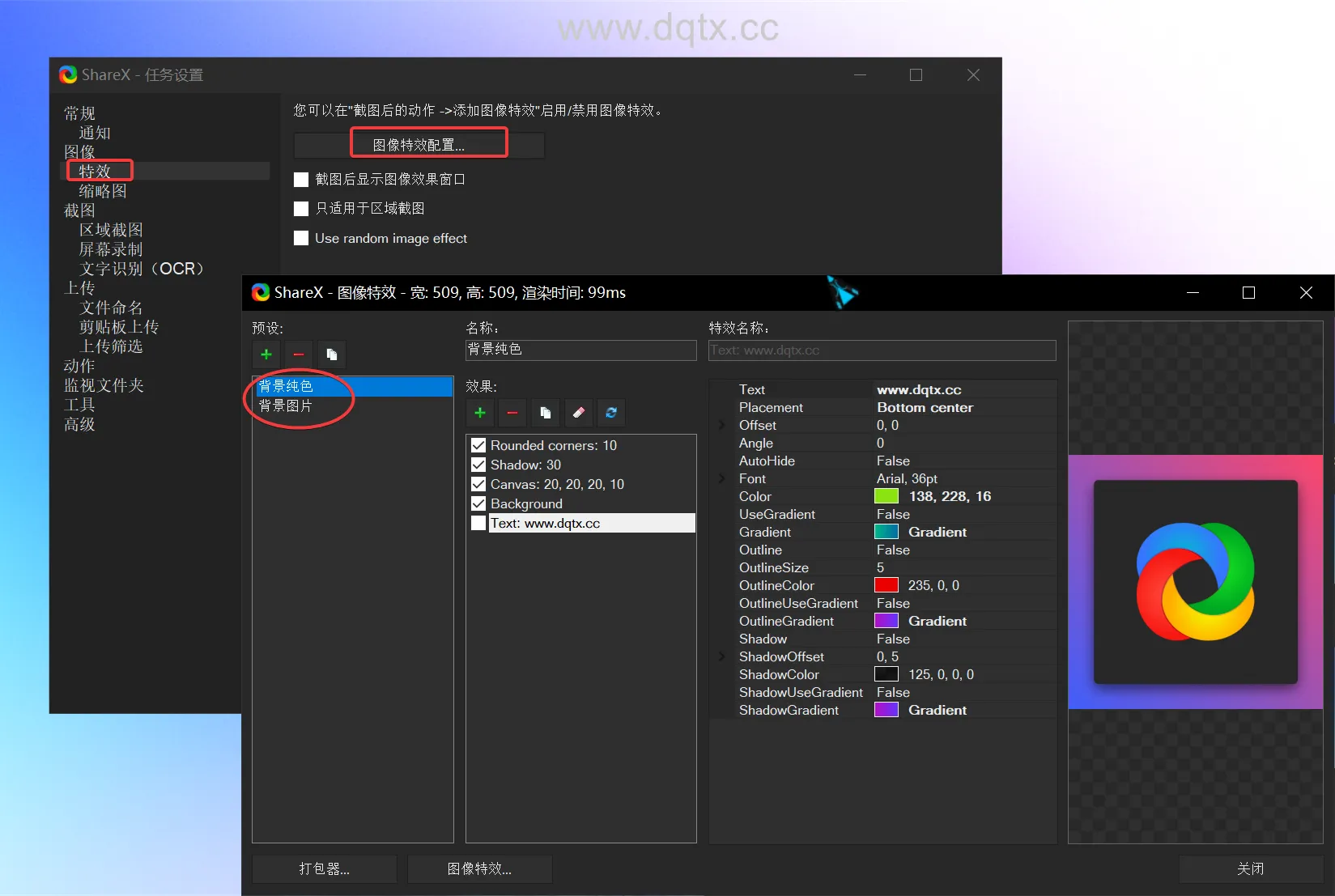 特效是这个软件的灵魂,我这边用到的两个特效,你可以点击动作设置 – 图像 – 特效 – 图像特效配置去添加你想要的效果。
