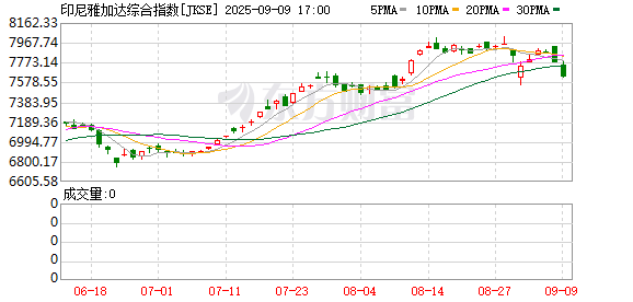 9月9日,印尼(印度尼西亚)股市、汇市、债市遭遇猛烈抛售,印尼雅加达综合指数盘中一度大跌1.84%,截至北京时间15:00,跌幅仍达1.74%;印尼盾汇率亦大幅跳水,美元兑印尼盾一度大涨超1%;印尼主权债券同步走低,基准10年期国债收益率持续走高,现报6.441%。