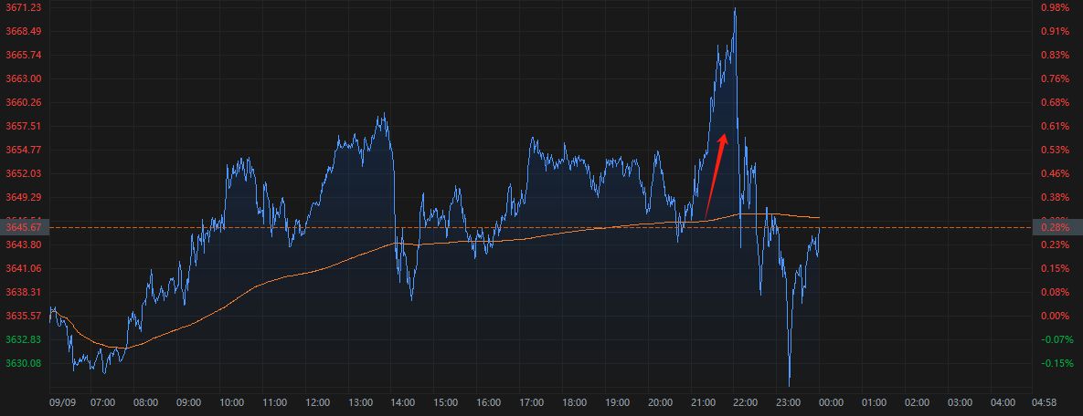 现货黄金也一度跳涨约30美元,将历史纪录刷新至每盎司3674美元,现回落至3645美元附近。