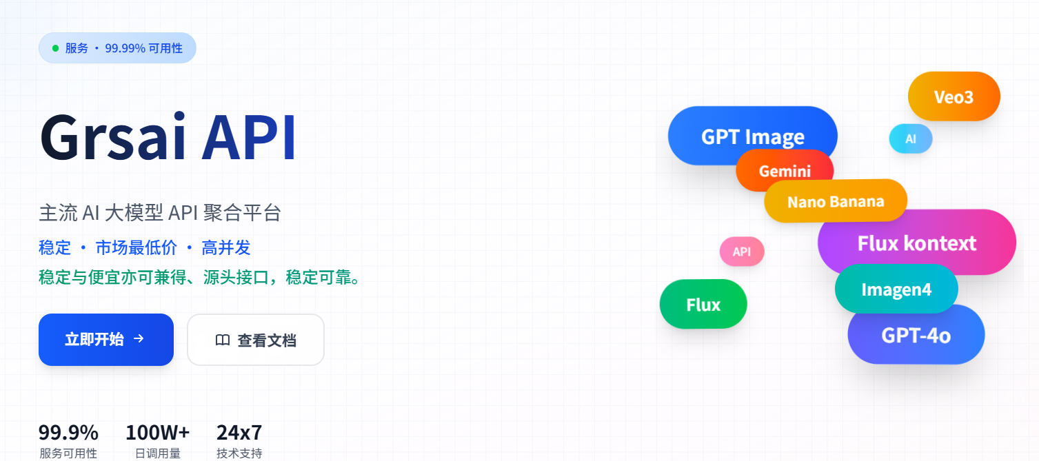 源头服务,低价稳定:市场上很多 API 服务是中间商,价格偏高且稳定性一般。而 GrsAi 作为源头供应商,我自己搭建和维护整个服务器集群,砍掉了所有中间成本,将价格压到最低(才能吸引用户)这让我们能提供极具竞争力的价格和远超同行的稳定性。“便宜又稳定” 是我们收到最多的用户评价。