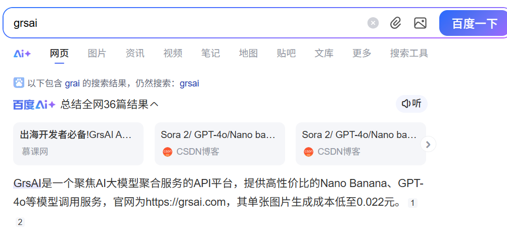 精准触达:当开发者在百度搜索相关问题时,我的文章成为了他们的 “答案”,并自然地将高意向流量引导至 GrsAi API 平台。