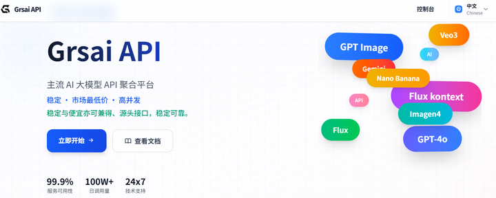 上面提供的免费开源 Ai 生成工具都是需要自己去 API 平台获取 APIkey 进行调用才可以使用,而 GrsAi api 正是这样一个提供多种便宜稳定的 AI 模型 API 聚合平台。