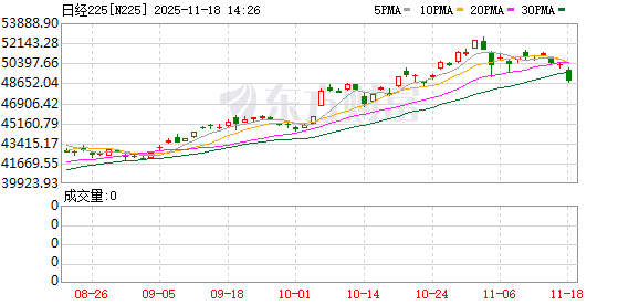 市场风险情绪快速恶化。11月18日,亚太市场全线重挫。日经225指数一度跌超3%,MSCI亚太指数下跌2%至221.28点,韩国首尔综合指数跌超3%,澳大利亚标普/ASX 200指数一度跌2%。纳斯达克100指数期货一度跌幅扩大至1%,道指期货跌0.5%,标普500指数跌0.7%。A股和港股集体下挫。虚拟币市场惨遭血洗,比特币一度跌破9万美元,以太坊一度跌破3000美元。