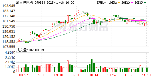 据大智慧VIP,截至11月17日记者发稿,阿里股价涨0.84%,报156.2港元/股。