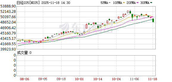 11月18日,日经225指数跌破49000点关口,收报48702.98点,跌1620.93点,跌幅达3.22%,创4月9日以来最大单日跌幅。