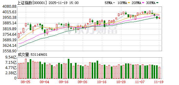 A股三大指数今日集体回调,沪指日K线三连阴。截止收盘,沪指跌0.81%,收报3939.81点;深证成指跌0.92%,收报13080.49点;创业板指跌1.16%,收报3069.22点。沪深两市成交额19261亿,较昨日小幅放量153亿。