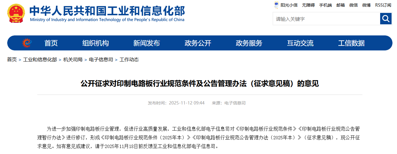 除了英伟达业绩超预期的消息外,近日工信部电子信息司正式发布《印制电路板行业规范条件(2025年本)》及《印制电路板行业规范公告管理办法(2025年本)》两份征求意见稿。文件从淘汰落后产能、激励技术创新、明确技术指标等方面,推动印制电路板产业高端化、绿色化、智能化发展,引导产业加快转型升级。