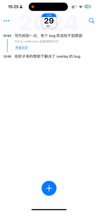自打上线以来,无数用户都反馈过,希望可以左右划动就可以切换日期。但是这个左划的手势,已经日记条目占用了,加入左右划动的话就会造成手势冲突,所以我就一直没改。