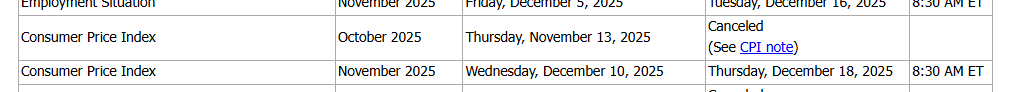 这意味着美联储在12月10日利率决议时,将再度缺少一项关键的通胀数据作为参考。BLS还称,原定于12月10日发布的11月份CPI数据,将推迟到12月18日,即在美联储决议之后发布。