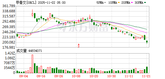 该公司正准备发行380亿美元的债券,用于支付人工智能数据中心的建设费用,其调整后的净债务规模已徘徊在1000亿美元左右。自9月份达到峰值以来,甲骨文股价已连续六周下跌,较历史最高点下跌了39%,周五收于198.56美元。