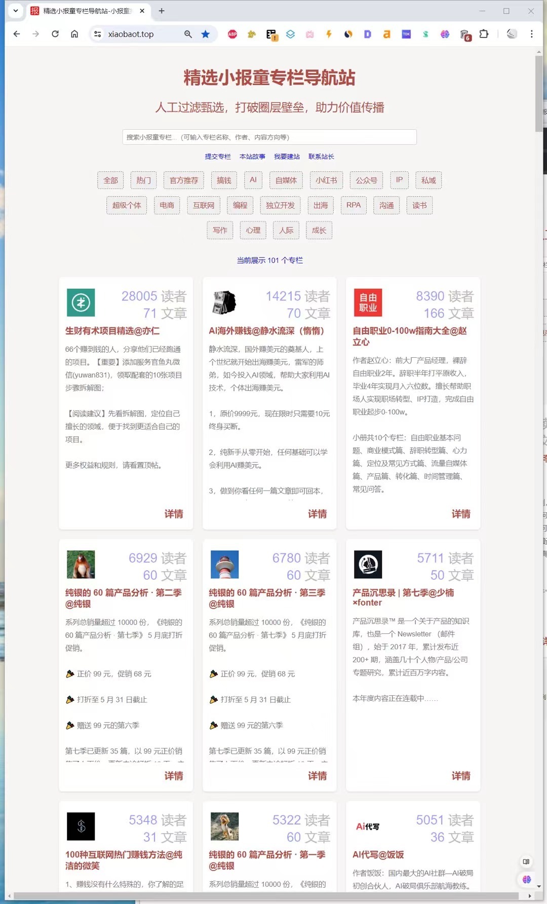 我是 精选小报童专栏导航站 – 小报童排行榜( https://xiaobaot.top/)的作者。