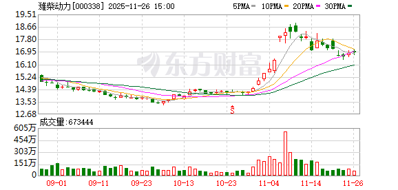 二级市场方面,潍柴动力股价今日上涨1.63%,本月涨幅为12.77%。