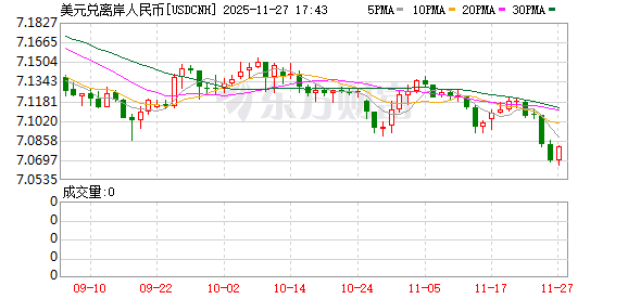 更多反映国际投资者预期的离岸人民币对美元汇率在前一交易日创下一年多新高后11月27日进一步走强,盘中最高升至7.06527。