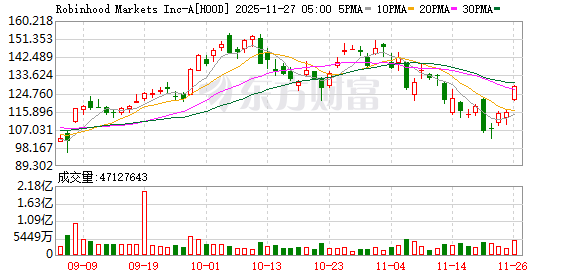周三(11月26日),美国券商Robinhood股价收涨10.93%,涨幅跑赢标普500指数中近500只股票。